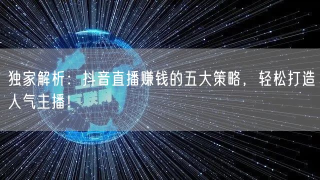 独家解析:抖音直播赚钱的五大策略,轻松打造人气主播!