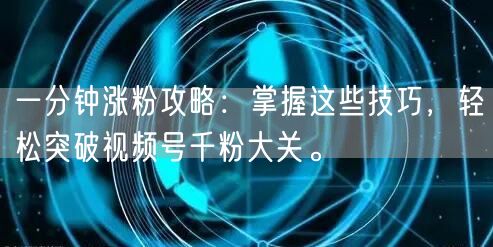 一分钟涨粉攻略:掌握这些技巧,轻松突破视频号千粉大关。