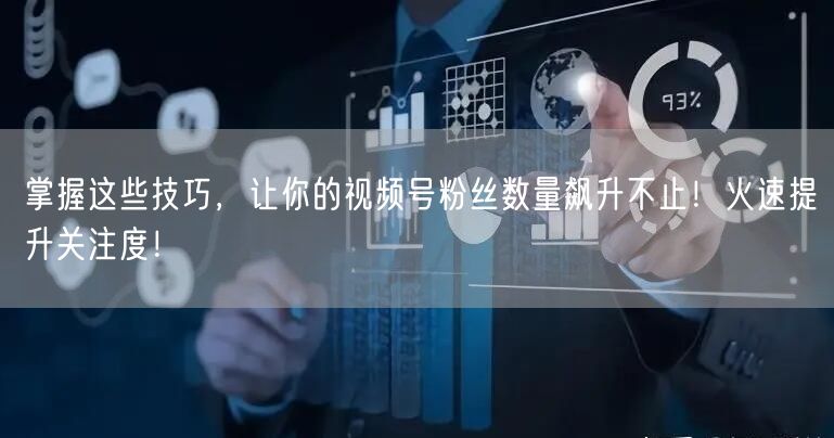 掌握这些技巧,轻松让你的视频号粉丝数量飙升不止!火速提升关注度,助力你的短视频事业飞速发展。优化内容,吸引更多观众,让你...